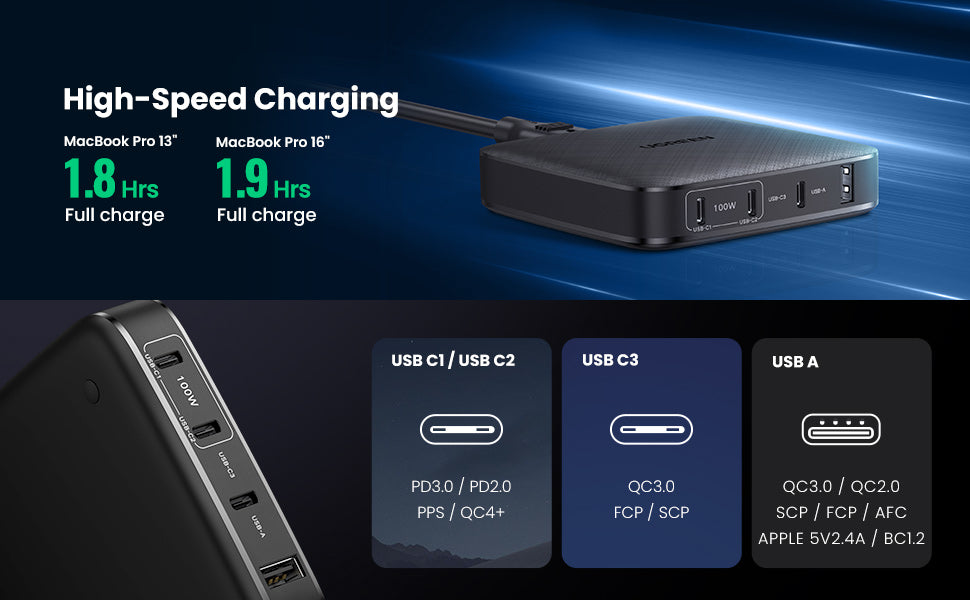 UGREEN 100W USB C Multiport Charger for MacBook, Laptop, iPhone, iPad, Galaxy Phones, and More