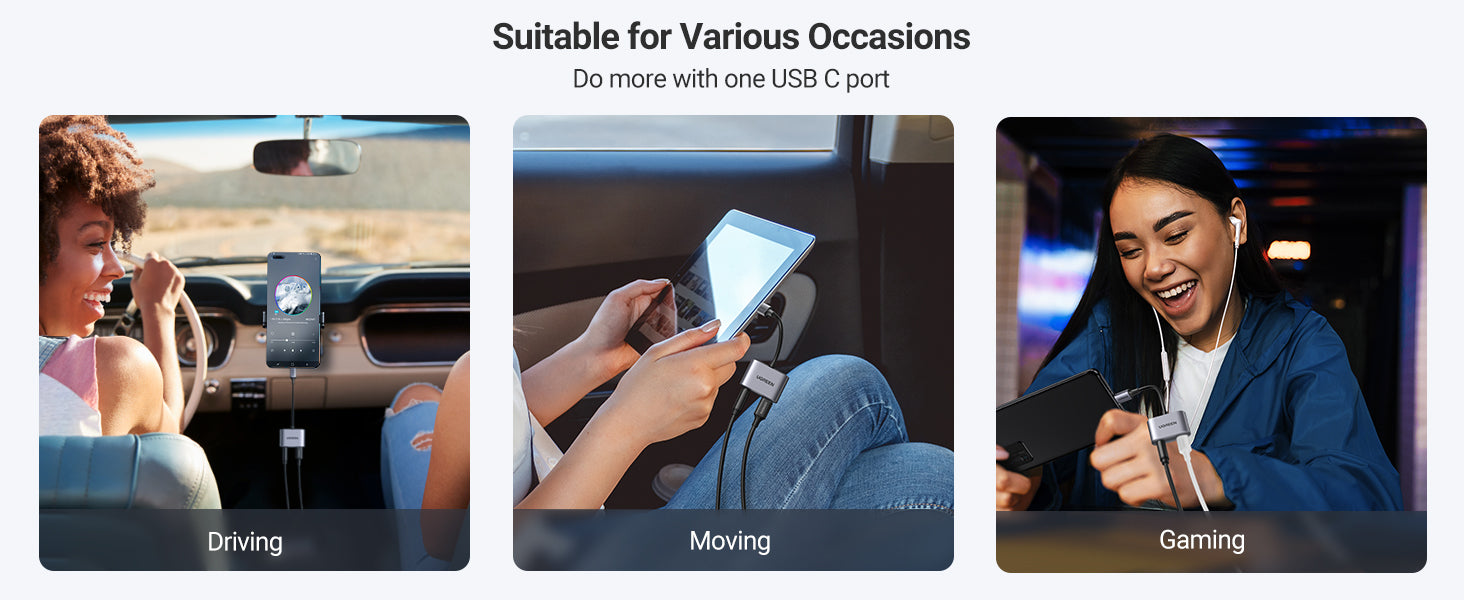 DAC Chip: Built in with DAC Chip, UGREEN 2-in-1 USB-C to 3.5mm Headphones Adapter is designed to let you listen and charge simultaneously on a variety of Type C devices. -