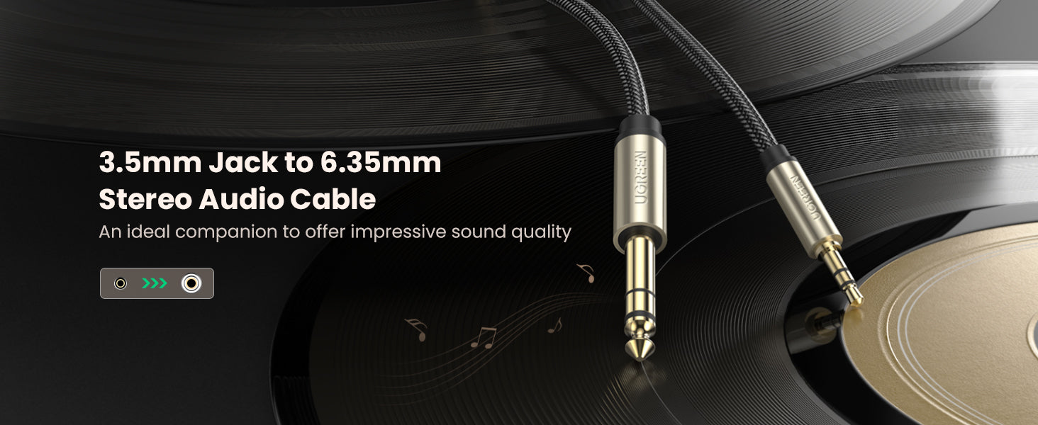 UGREEN 3.5mm to 6.35mm 1/4" audio stereo cable is capable of carrying 'stereo' (left, right) audio signals. Perfect for connecting between devices with 1/8" and 1/4" jacks.