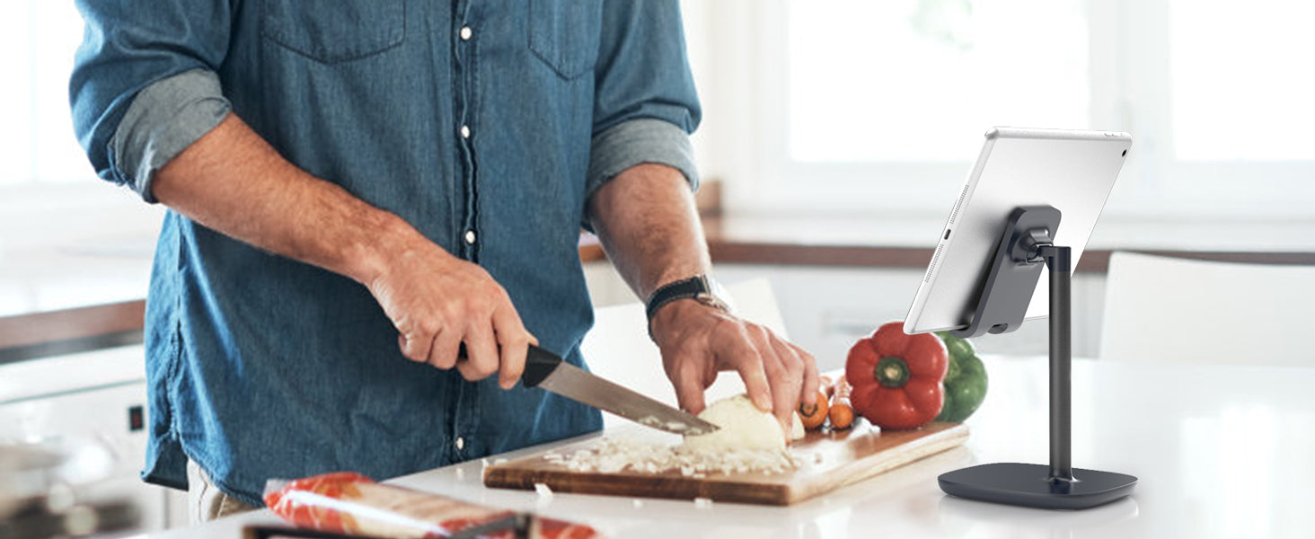 Sturdy and Stable: Made of aluminum alloy and weighted base keep the stand from toppling over when viewing recipes
