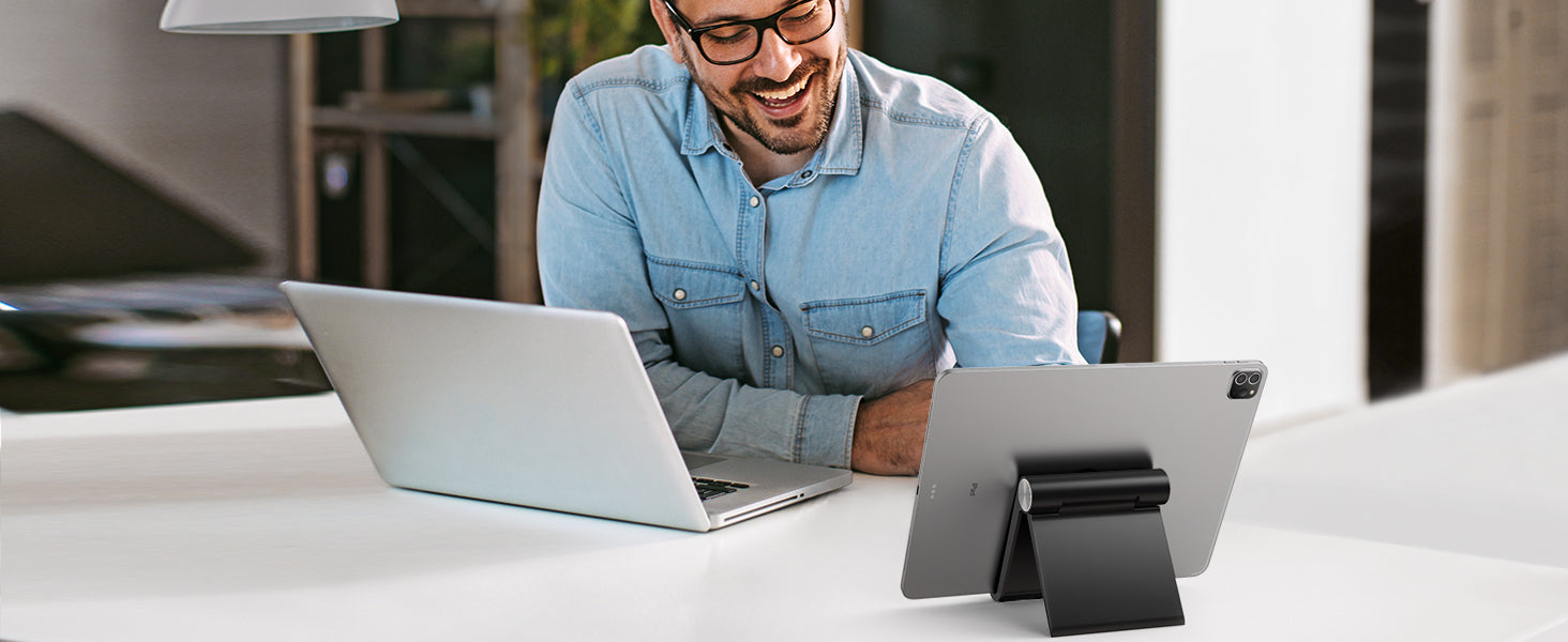 The ipad holder stand allows you to flexibly customize the angle of the device to find the most comfortable viewing angle.