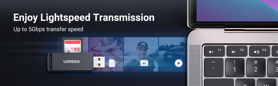 This USB 3.0 card reader easily expands SD and TF slot on your computer for card reading and writing at super speed up to 5Gbps.