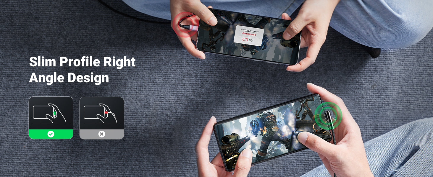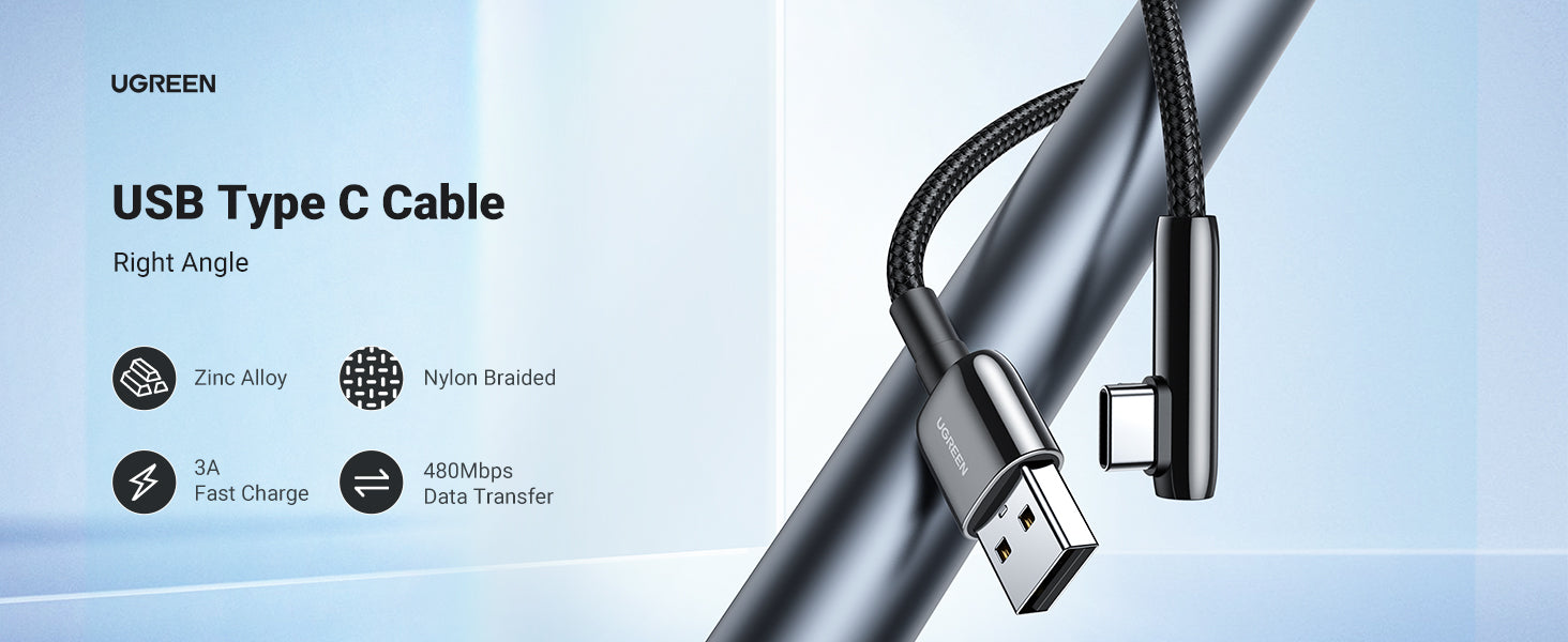 The USB-C to USB-A cable with an innovative 90 degrees L design, is much more convenient and more comfortable for playing games, watching videos, reading e-books when you lie on the couch or bed while charging.