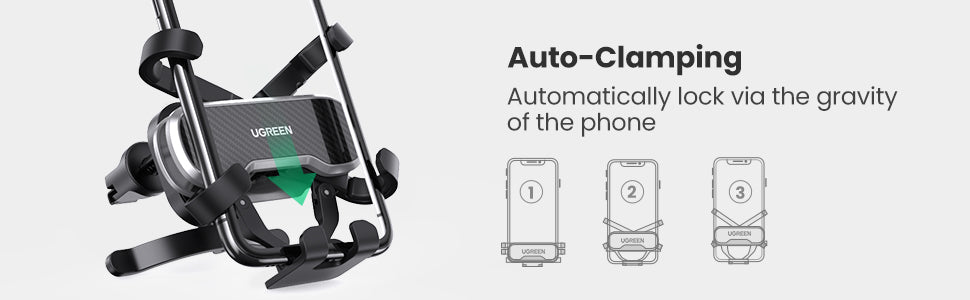 UGREEN auto-clamping car phone holder mounts your mobile phone onto car air vents for hands-free navigation, which stops you from breaking road laws and improves driving safety.