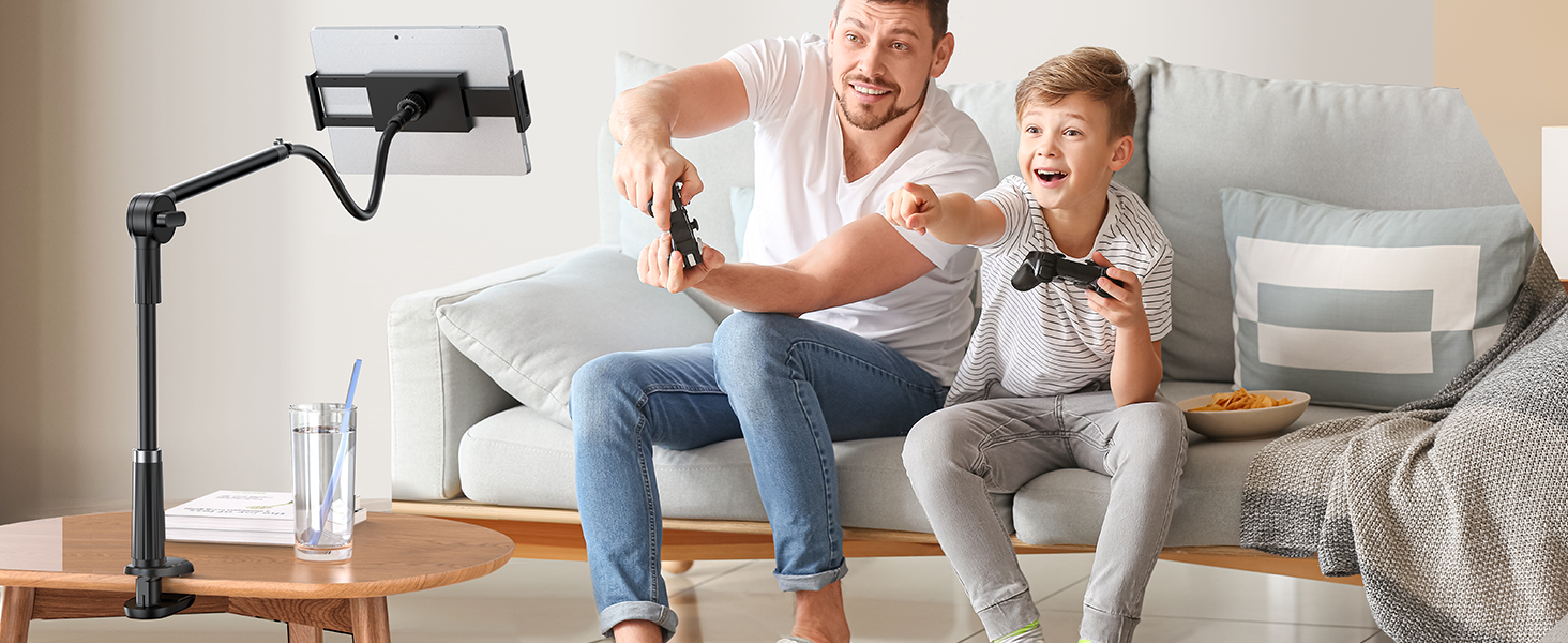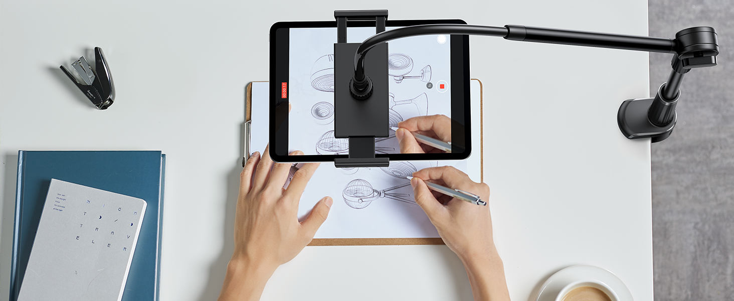 Tablet Stand Holder for Desk Video Recording Laying Down Rotating Swivel Swing Arm