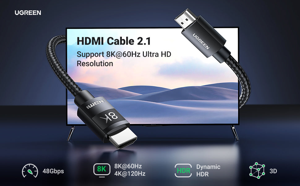 UGREEN Premium HDMI 2.1 Cable 8K 48Gbps Ultra High-Speed Compatible with PS5 Apple TV, TV Stick, Laptop, Computer, Monitor, TV