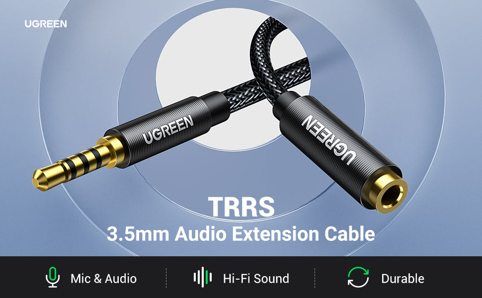 UGREEN 3.5mm headphone extension cable is made of high-quality materials, such as soft cotton nylon braided jacket, corrosion-resistant gold plated connectors, polished aluminum alloy cover and enameled copper cord. And this premium earbuds extension passes through 10000 pulling and bending tests, which can strongly proof its long lifespan and incredible durability.