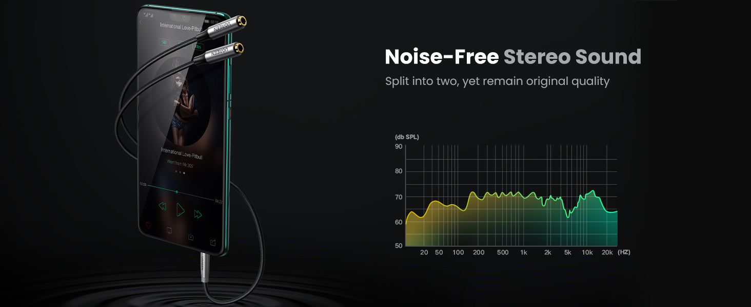 Though the Dual Headphone Jack Splitter splits the audio signal into two outputs, it remains original sound quality and delivers undiminished stereo sound to both female aux sockets.