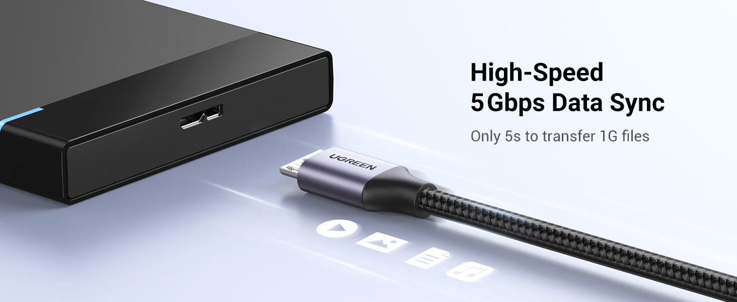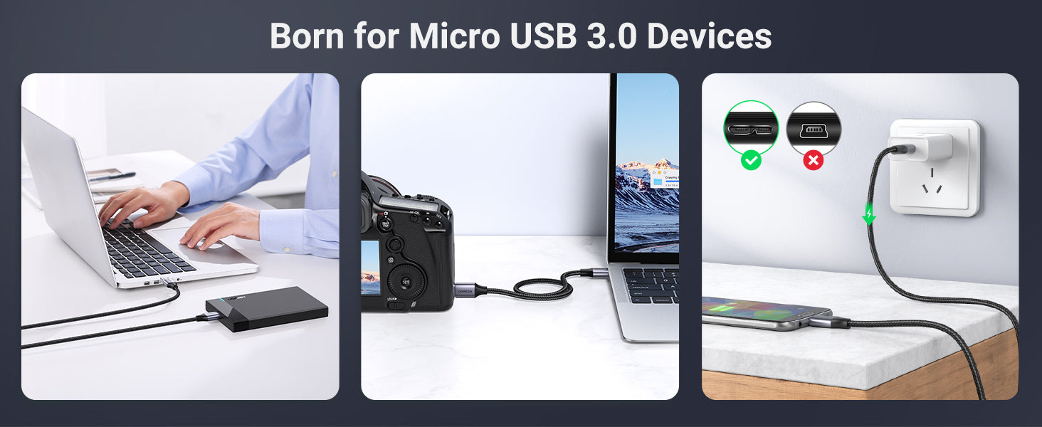 Aluminum Shell: With wear-resistant robust aluminum case to ensure stable and fast data transfer, provide the Micro USB 3.0 Cable maximum conductivity and minimize data loss.