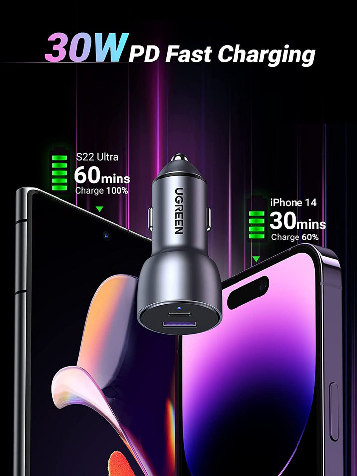 Type C Car Charger PD 30W&SCP 22.5W/QC 18W, Fast Car Charger Adapter