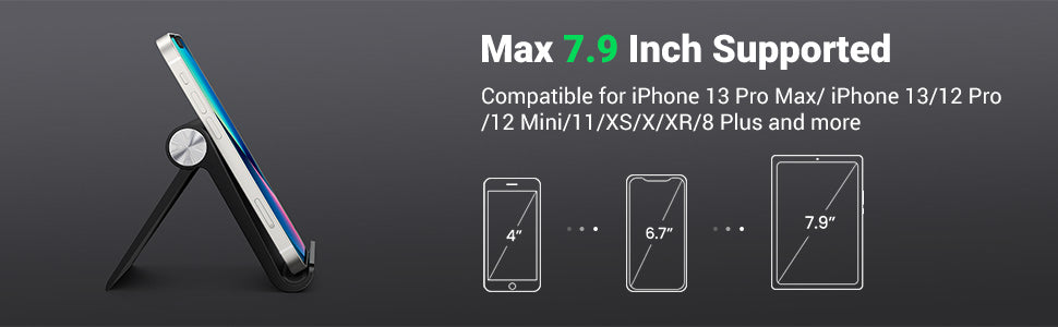 The cell phone stand for desk can fold flat for travel or storage, compact size to carry in the backpack and everyday tote.