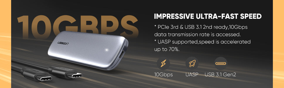 This M.2 SSD enclosure features latest USB 3.1 Gen 2 and PCIe GEN 3, which supports amazing data transmission rate up to 10Gbp. It is faster enough to transfer 1GB files in 1 second.