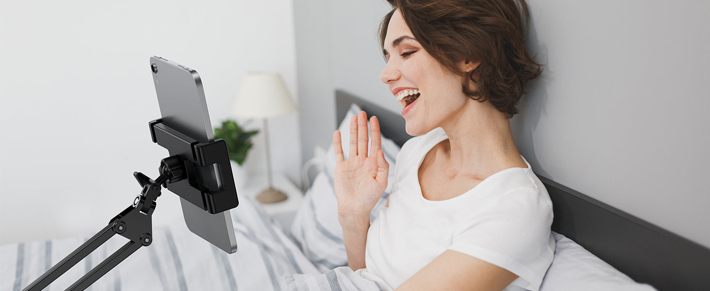 Made of the 360-degree rotation joint, 2-stage and 180° & 135° adjustable sturdy steel arms with a total 750mm length, this flexible tablet phone mount is easy to grab your device, twist it, raise it, turn it sideways or any direction you like.