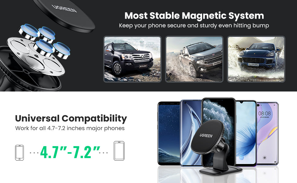 With strong adhesive, UGREEN car phone mount can firmly stick to your car dash for a longer lifespan. No worry about falling off.