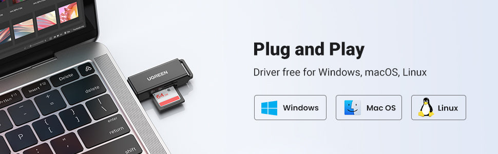 This USB 3.0 card reader easily expands SD and TF slot on your computer for card reading and writing at super speed up to 5Gbps.