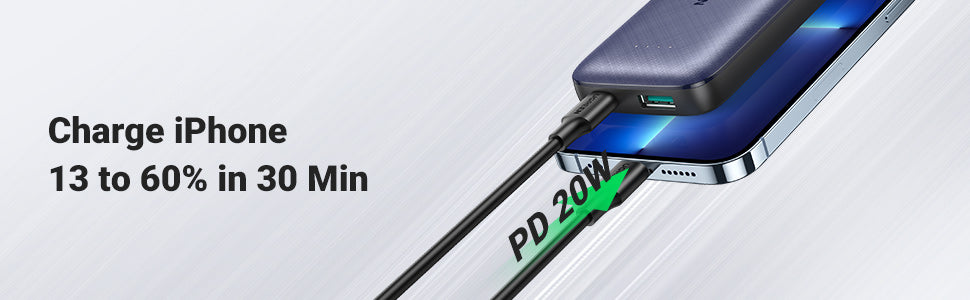 • Portable Charger with USB-C Power Delivery 20W