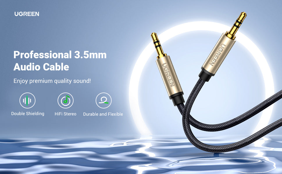 UGREEN professional 3.5mm audio cable for headphones lets you connect your mobile device,like iPhone, iPad 9, iPod or MP3 player,to a car stereo, speaker system, Headphone, Headset, or any other audio output device that has a 3.5-millimeter jack.