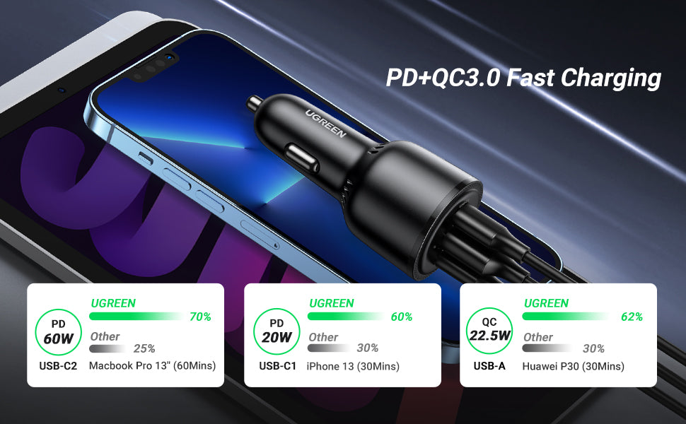 PD 65W&PD 20W&SCP 22.5W/QC 18W Type C Car Charger Fast Charging, Car Charger Adapter Compatible with iPhone 14/13/12/11/iPad/Mac Book, Galaxy S22/S21/S20/S10/Note 20