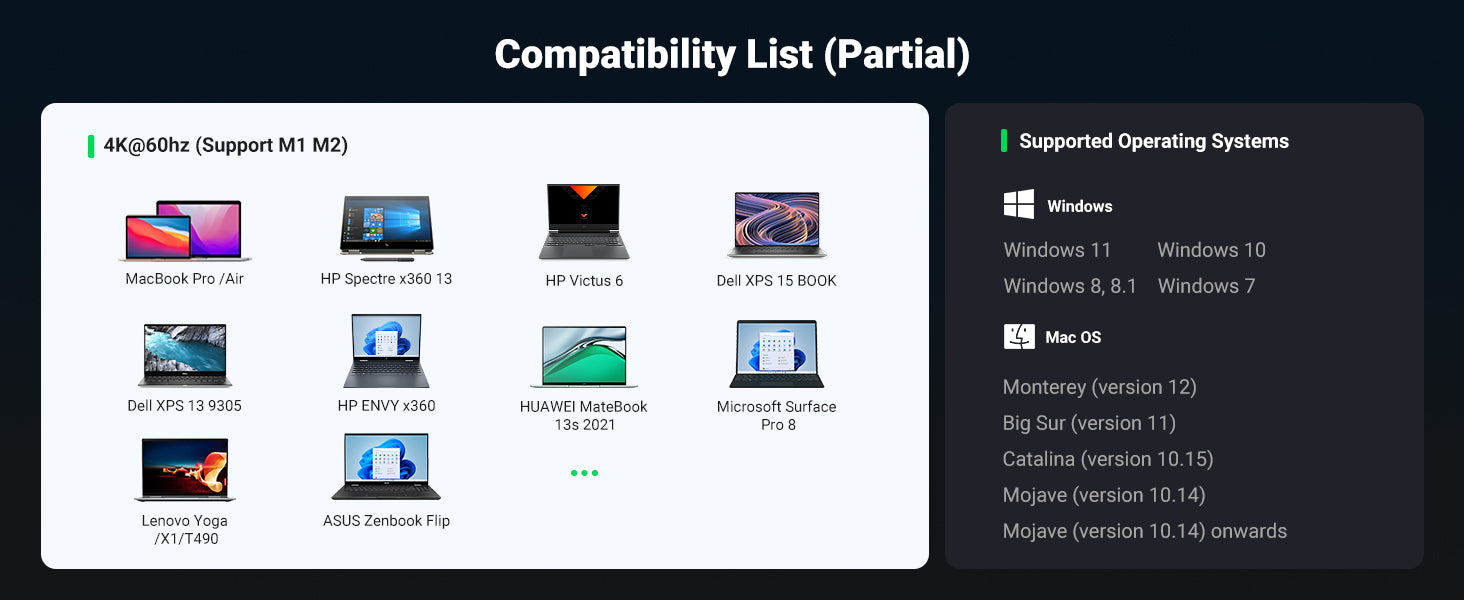 Allow you to connect most devices for macOS and Windows, expanding the capabilities of your home or office workspace.