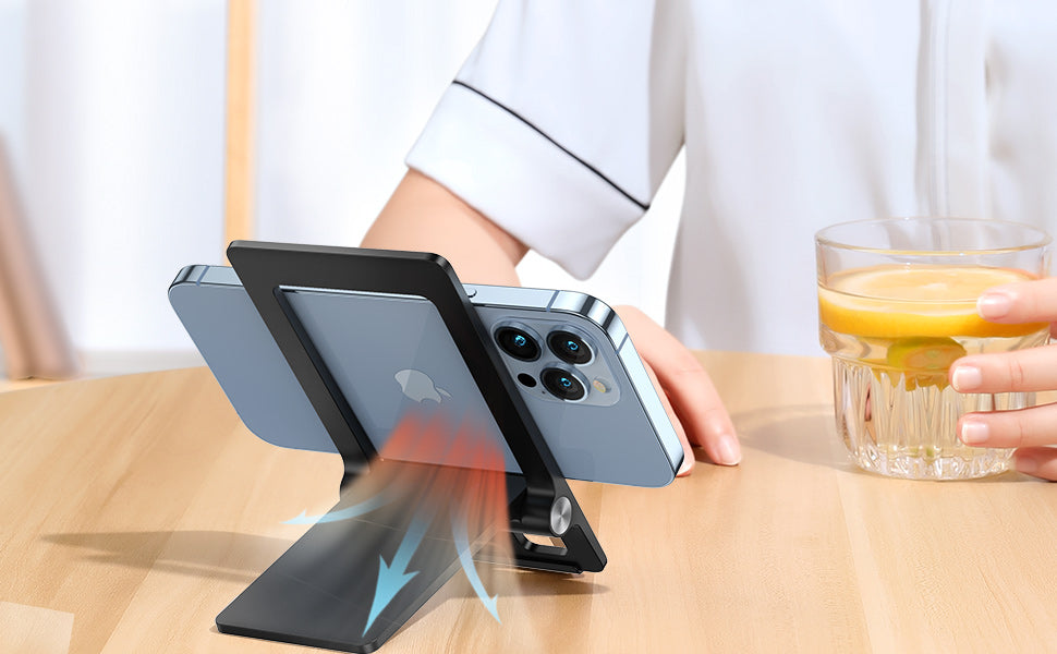The desk phone stand features a flexible hinge to allow you to adjust the angle. The lifted height of your phone will be adjusted as the angle changes.