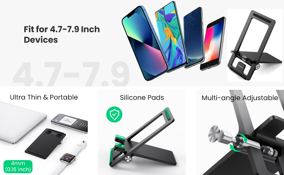UGREEN cell phone stand releases your hands and secures your smartphone in place for comfortable hands-free video recording, video calls, video conferences, etc.
