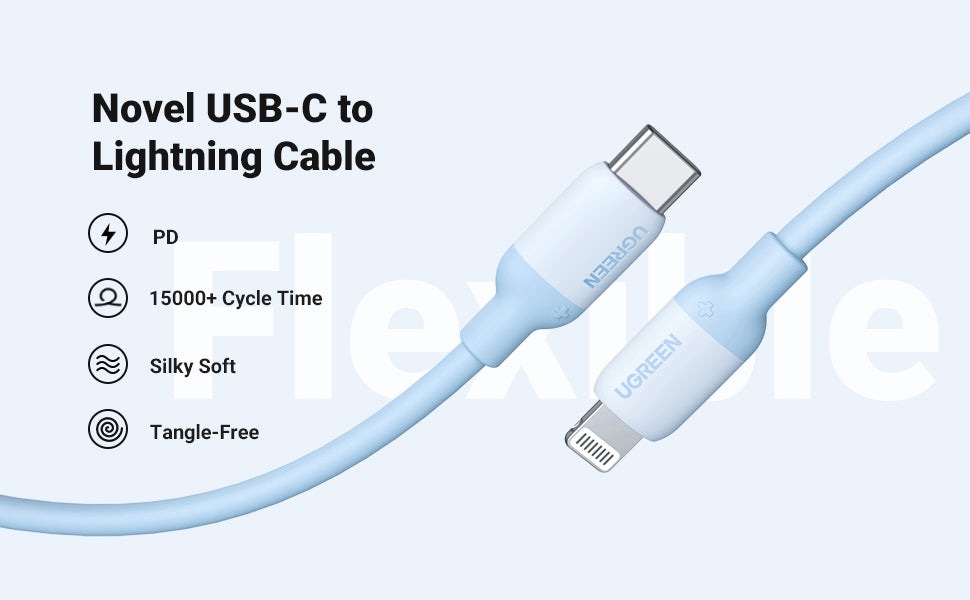 UGREEN USB C lightning cable passed 15000+ fatigue test, the body and the connector are x4 stronger than stock lightning cable, so if you charge your devices 5 times per day using this cable, you can use it for many years.