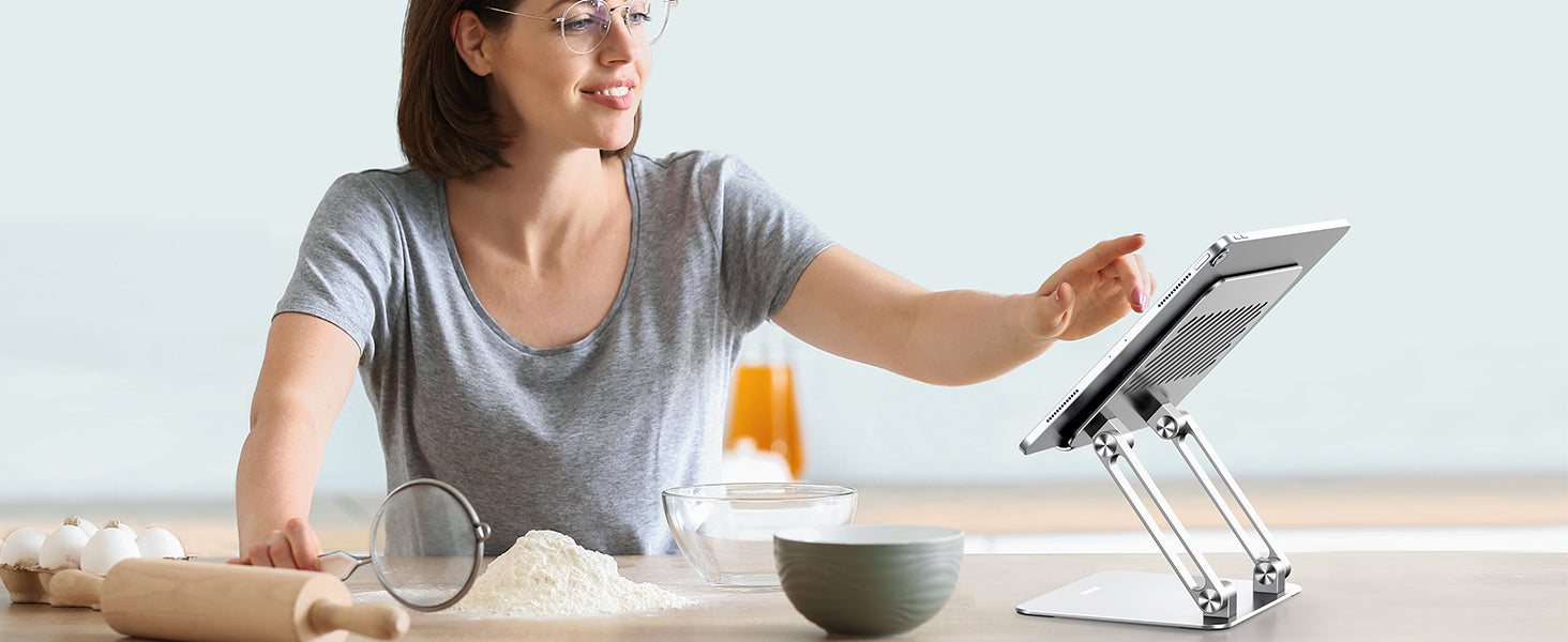 This tablet stand easily adjusts to comfortable heights & angle based on your actual need.