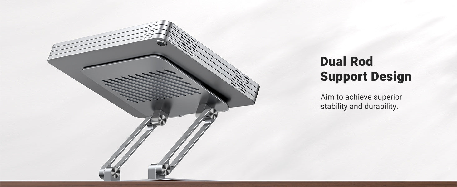 Desk Dual Rod Support Aluminum Desktop Tablet Holder Adjustable Foldable Dock Multi-Angle Riser Compatible with ipad pro 12.9, 9.7, 10.5, ipad air Mini 4 3 2 Silver