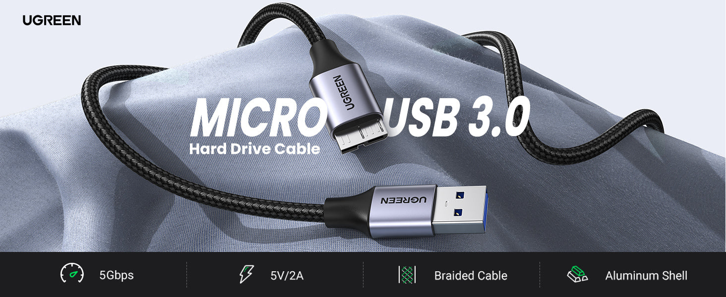 UGREEN USB sync data cable for your Samsung Galaxy S5 and or Galaxy Note 3, connects a portable external USB 3.0 hard drive to a computer for speedy file transfer or synchs and charges Samsung smartphones or tablets equipped with the USB 3.0 Micro-B port.