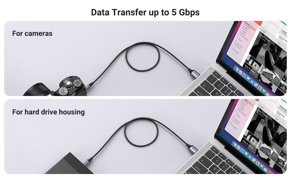 10X faster than USB 2.0 cable(480Mbps, 25-40MB/s), UGREEN 5Gbps USB C Cable 3.0 transfers 10GB music, movies, or entire seasons of TV shows in only 10 seconds.