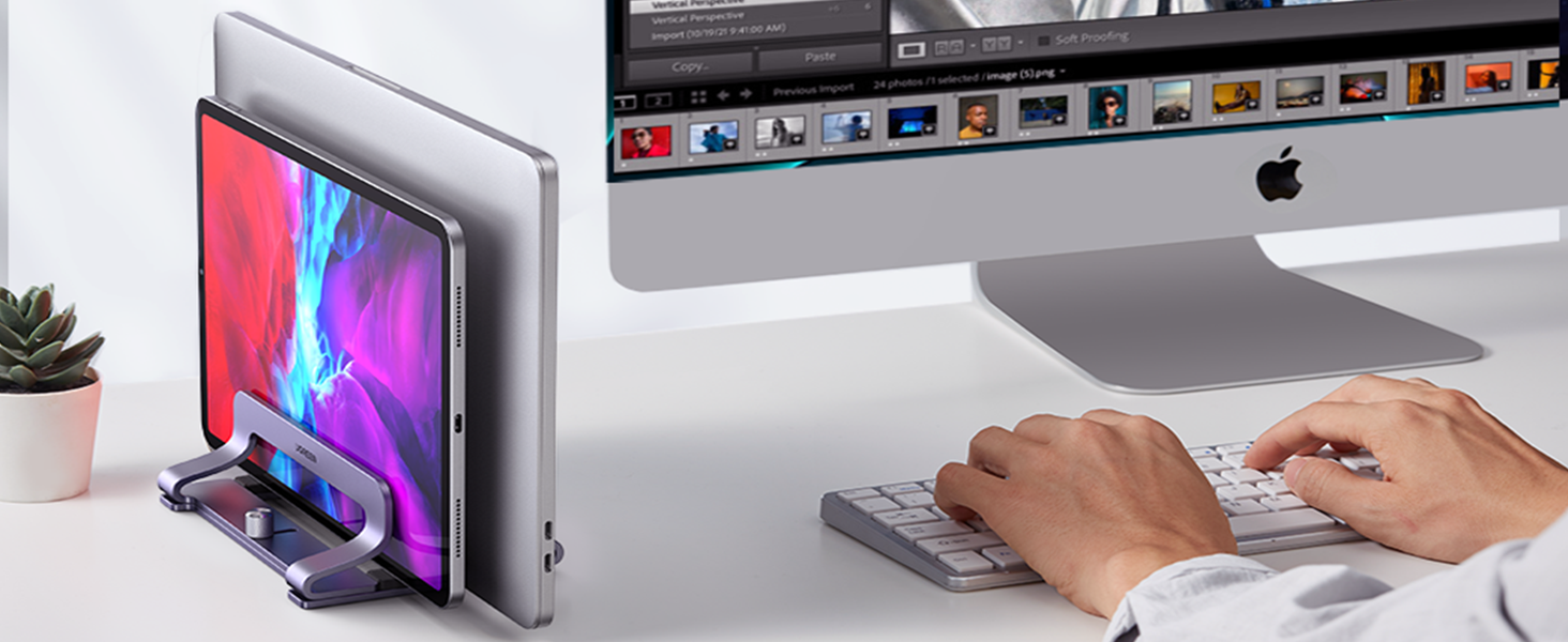 A multifunctional laptop holder for better desk organization. Save a lot of space and is easy to store and charge your laptops.
