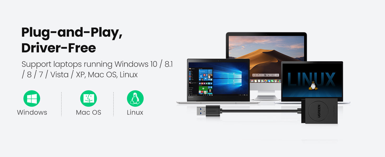 For the USB 3.0 connection, compatible with Windows XP/Vista/7/8/8.1/10, Mac OS, Linux, Chrome OS.
