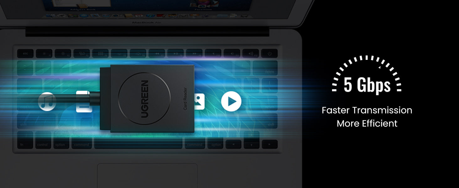 This SD/TF card reader support super faster data transfer up to 5Gbps through USB 3.0 interface -10X faster than USB 2.0, transfer HD movies, or files in just seconds.